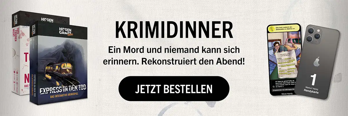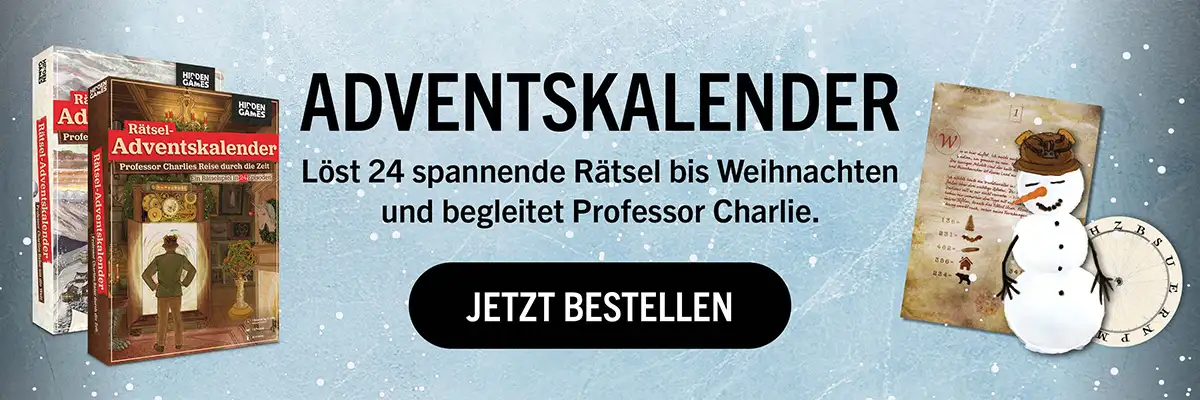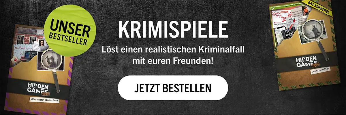Auf euch warten viele spannende Kriminalfälle, Rätselkarten zum Verschenken, Hidden Games Hangover als interaktives Krimispiel, Unter Verdacht als kurzweilig skurriles Ermittlerspiel und unsere beiden Rätsel-Adventskalender mit Prof. Charlie.